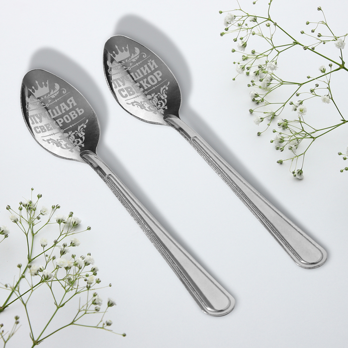 Сувенирная ложка - это креативный и оригинальный предмет для приготовления и подачи чая во время семейных посиделок. Ложка украшена милой подписью, что делает её привлекательной при сервировки праздничного стола. Ложка станет отличным подарком или знаком внимания для родных и близких людей. Если у вас или ваших близких есть особенная и значимая коллекция посуды, данная пара может стать прекрасным дополнением к этой коллекции. Использование этих чайных ложек добавит волшебства по утрам или часам чаепития во время праздника.
