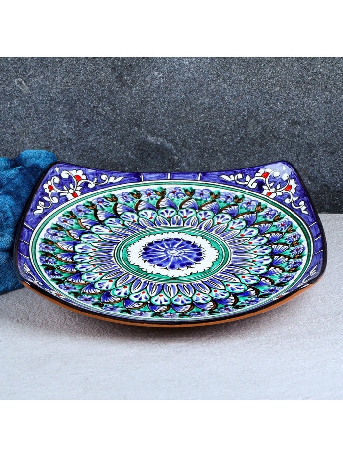 Эта тарелка легко становится частью домашнего уюта или ярким акцентом на праздничном столе. Растительный узор напоминает старинные орнаменты, украшавшие дворцы и мечети Средней Азии. Подходит как подарок, передающий тепло ручной работы, или как функциональная вещь с художественной ценностью.