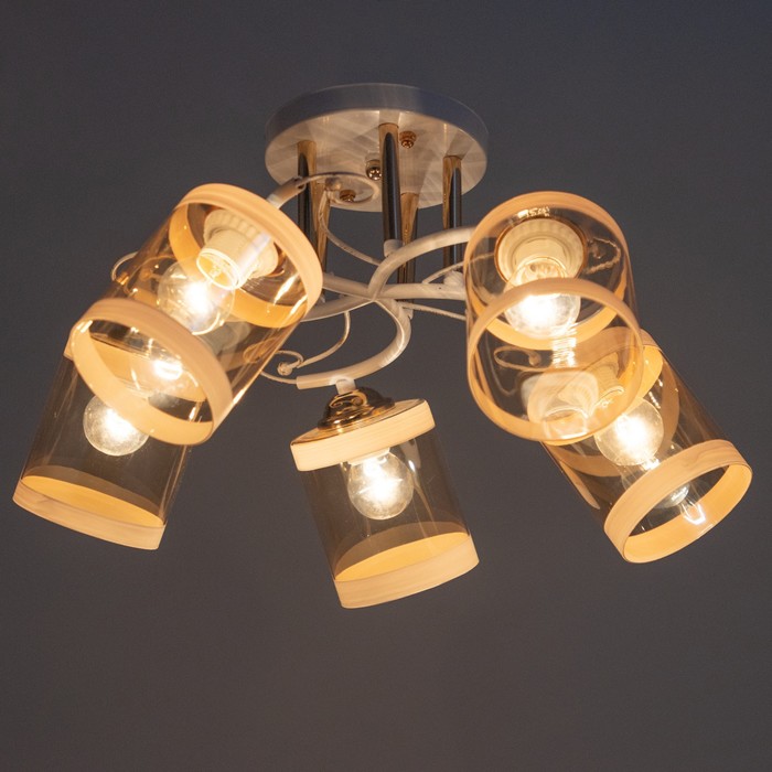 - Функциональное освещение для средней площади: Пять патронов E27 по 40 Вт обеспечивают достаточный уровень яркости. Подходит как для повседневного использования, так и для вечернего режима без дополнительной подсветки.