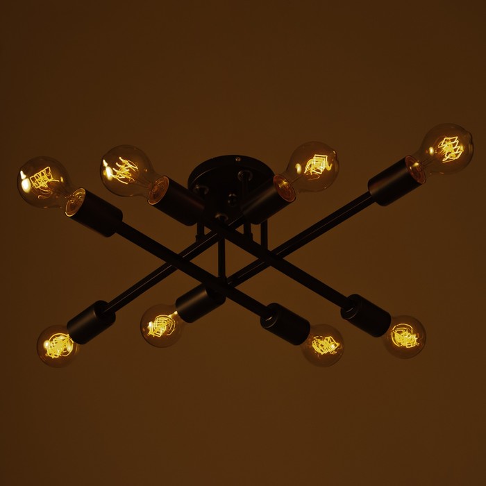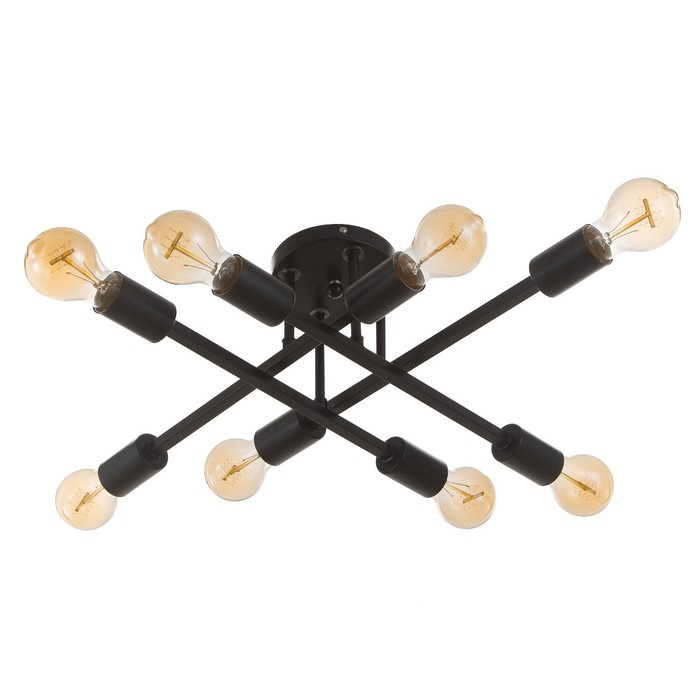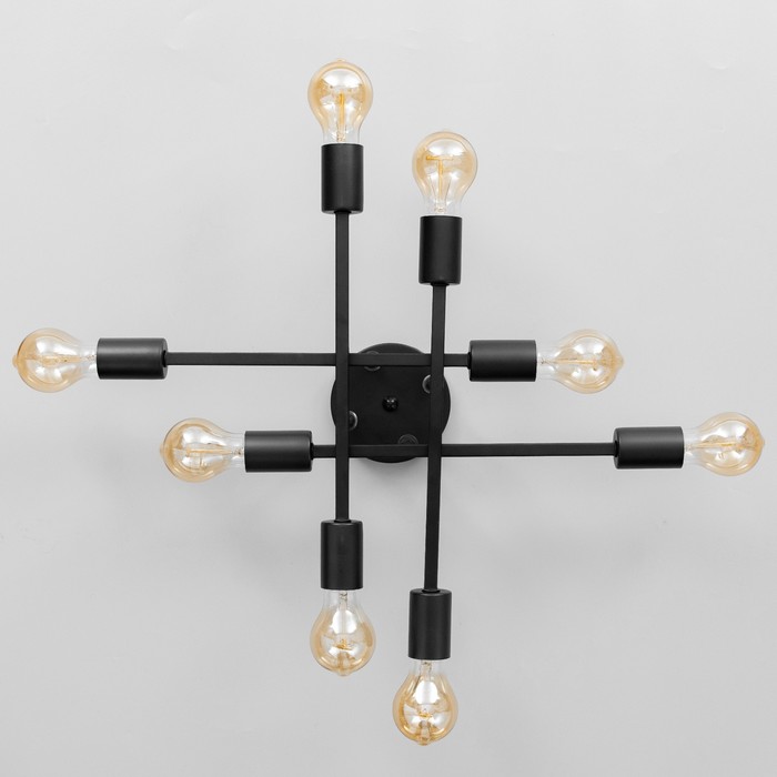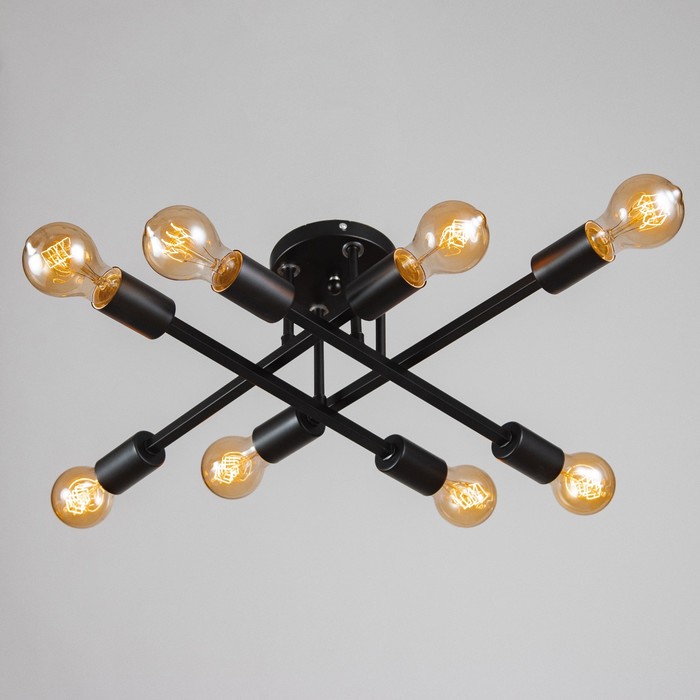 Восемь точек света в чёрной промышленной оправе. Потолочная люстра в стиле лофт на 8 ламп – мощное световое решение для просторных гостиных, кухонь-столовых или высоких спален. Её дизайн выдержан в духе индустриальной эстетики: чёрный металлический каркас, симметричная композиция и отсутствие плафонов подчёркивают брутальную выразительность.