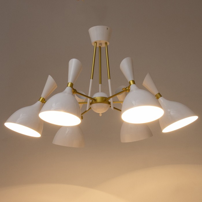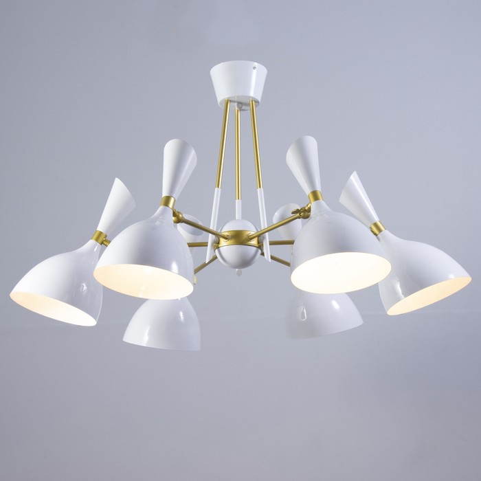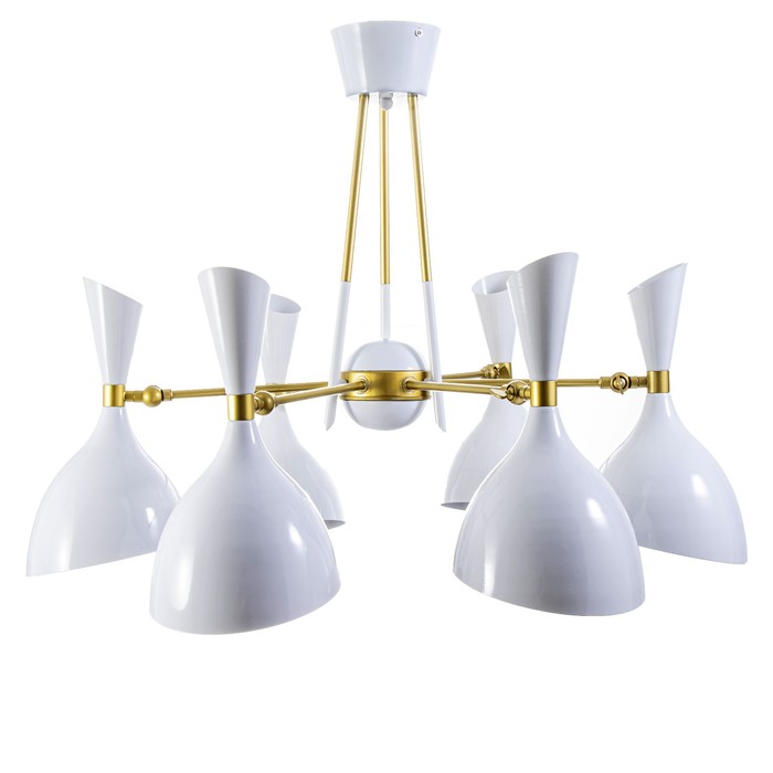 Сочетание современного стиля, функциональности и элегантности. С бело-золотым основанием, металлическими конусообразными плафонами, станет изысканным украшением вашего интерьера, создавая атмосферу уюта и комфорта.