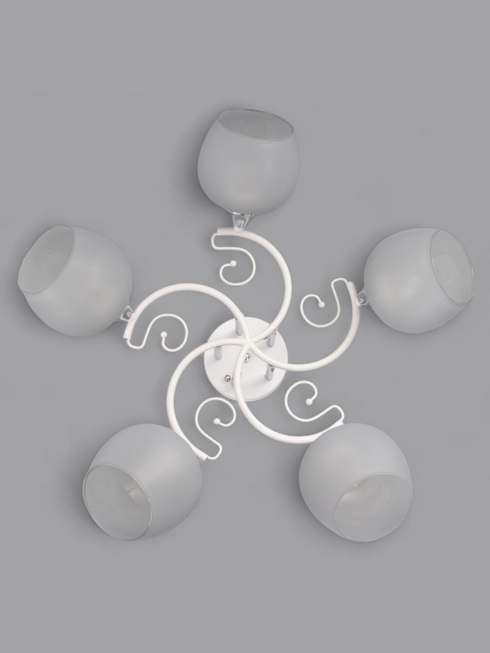Свет, собранный в пять точек равновесия. Потолочная люстра с пятью белыми плафонами — продуманное решение для просторной гостиной или спальни до 25 м². Спиралевидное металлическое основание и полусферические пластиковые плафоны создают равномерное рассеянное освещение без бликов. Компактная высота (всего 24 см) и длина 60 см позволяют использовать люстру даже при средней высоте потолков. Лампы не входят в комплект — подойдут любые с цоколем E27 до 60 Вт: накаливания, филаментные или энергосберегающие.