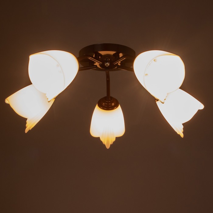Люстра легко монтируется на планку и подходит даже для натяжных потолков при использовании светодиодных ламп. Направленные в стороны плафоны обеспечивают равномерное освещение без слепящих бликов. Отсутствие пульта управления позволяет интегрировать светильник в существующую систему выключателей.