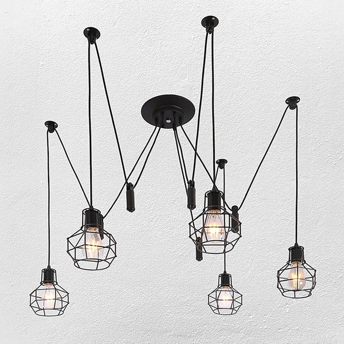 Люстра-подвес «Паук» идеально впишется в интерьер в стиле лофт. Свобода крепления на потолке обеспечивается благодаря точечным фиксаторам, позволяет регулировать расположение ламп как по горизонтали, так и по вертикали. Основание светильника крепится на планку.