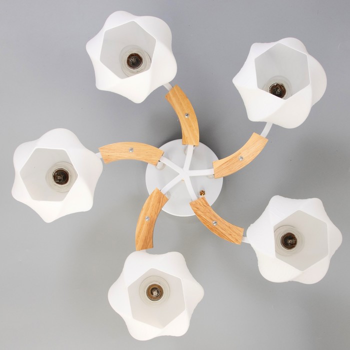 - Качественное освещение: пять лампы накаливания мощностью 40 Вт обеспечивают яркое и равномерное освещение площадью до 10 м², создавая уютную атмосферу.