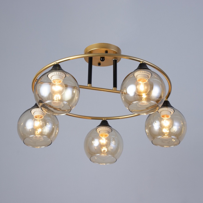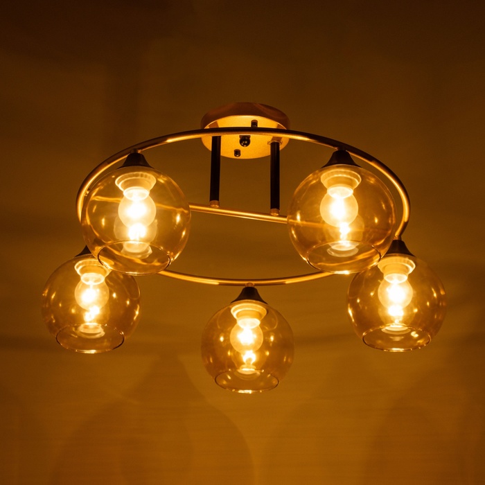 Благодаря продуманному дизайну, люстра сочетает в себе функциональность и эстетику. Металлическое золотое основание сохраняет презентабельный внешний вид долгие годы. Прозрачные стеклянные плафоны легко очищаются от пыли, облегчая уход за светильником.