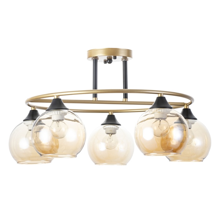 Потолочная люстра «Сицилия» с золотым основанием станет изысканным украшением гостиной или кухни. Классический дизайн и функциональность делают её подходящей для создания уютной атмосферы.