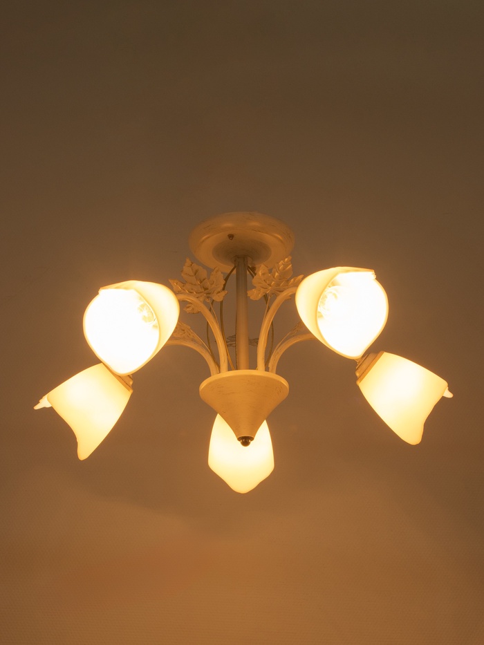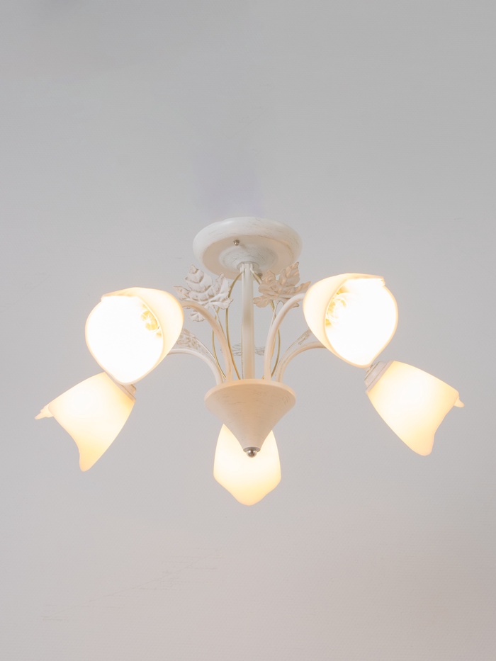 - Двойной стиль — Прованс и современность: Форма напоминает распустившийся цветок, что отсылает к уюту Прованса, но чистые линии и бело-золотая гамма делают люстру уместной в современных интерьерах. Она не выглядит старомодно, даже если стоит в классической спальне.