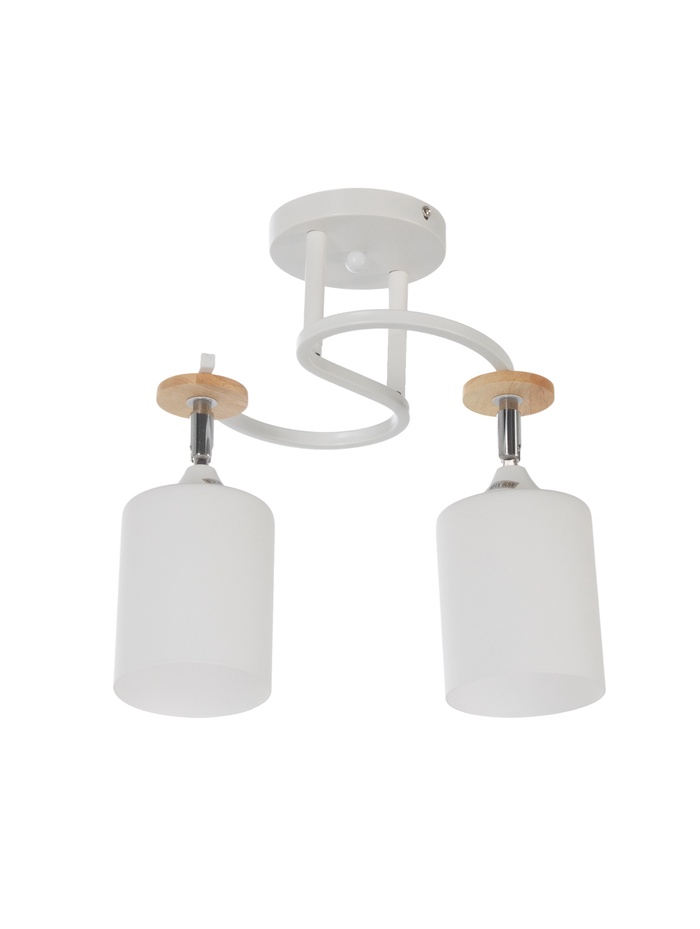 Потолочная люстра с белым металлическим основанием и двумя источниками света представляет собой функциональный и стильный элемент общего освещения. Сдержанный дизайн и нейтральная белая палитра отлично сочетаются с разными интерьерными решениями — от современного до классического, помогая создать уютную и визуально лёгкую атмосферу в комнате. Такая люстра не отвлекает внимание, но делает пространство светлее и более уютным даже при скромных габаритах.