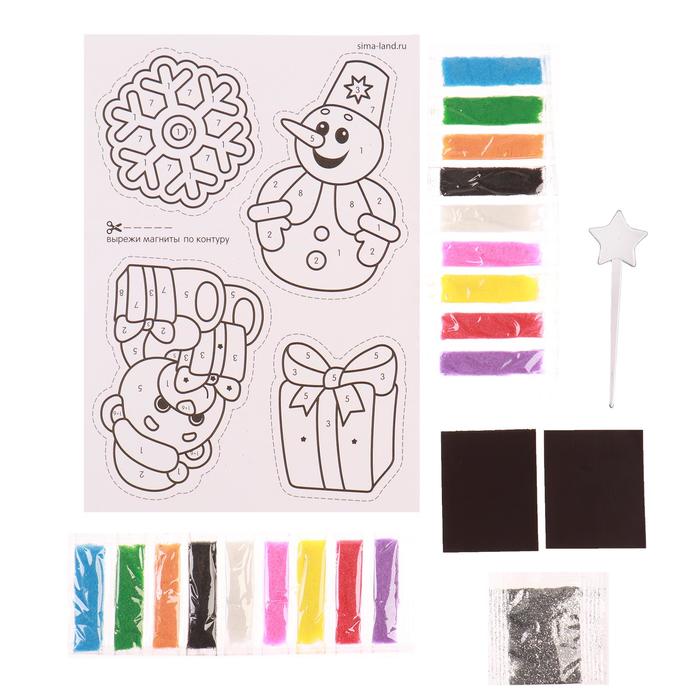 Фреска песком — увлекательный вид творчества, который понравится ребёнку. Клеевая основа защищена специальным слоем бумаги, куда нанесены прорезные контуры. Каждый цвет находится в своей зоне: отделяйте верхний слой с помощью стеки и засыпайте элементы песком.