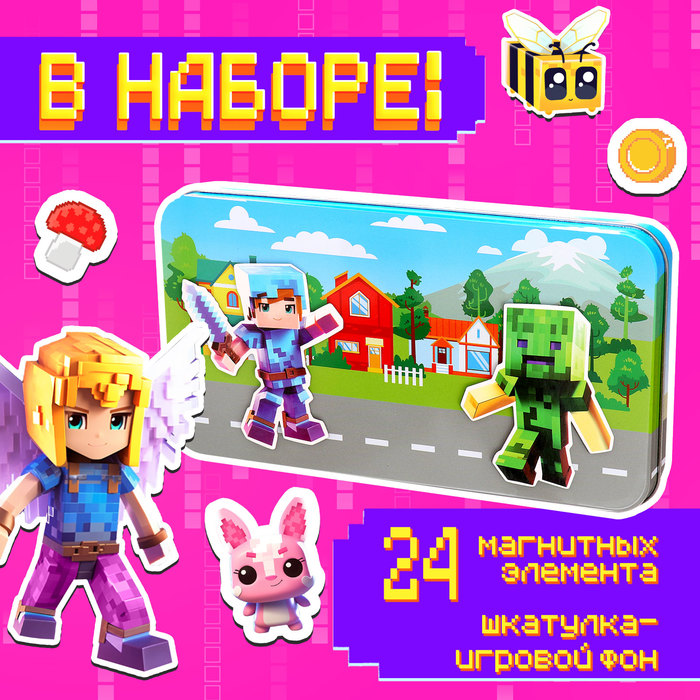 - 24 элемента с сильными магнитами из прочного пенокартона толщиной 2 мм, среди которых 10 забавных персонажей.
