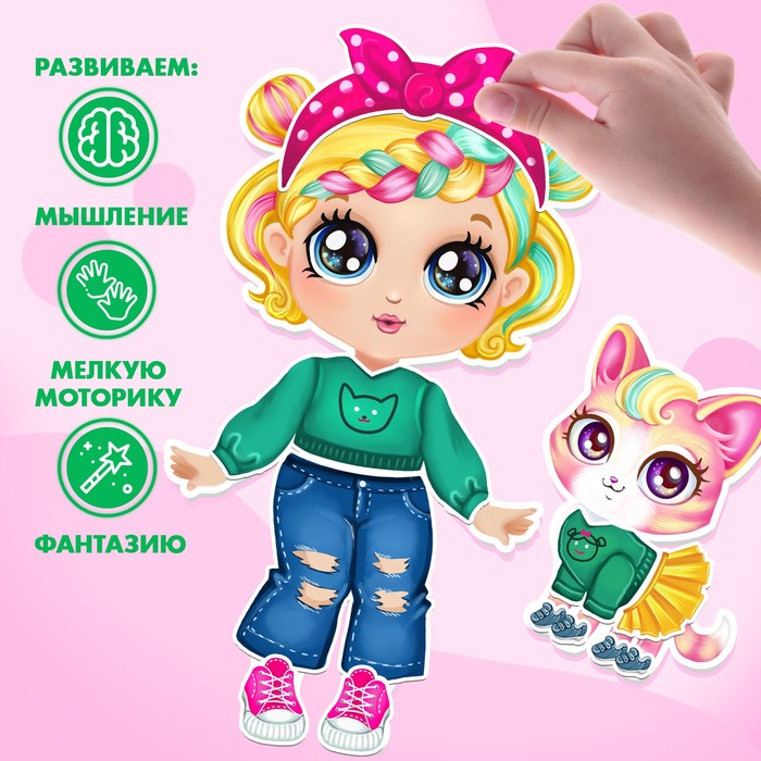 - Магнитная подложка в виде куклы высотой 21 см и питомца высотой 12 см.