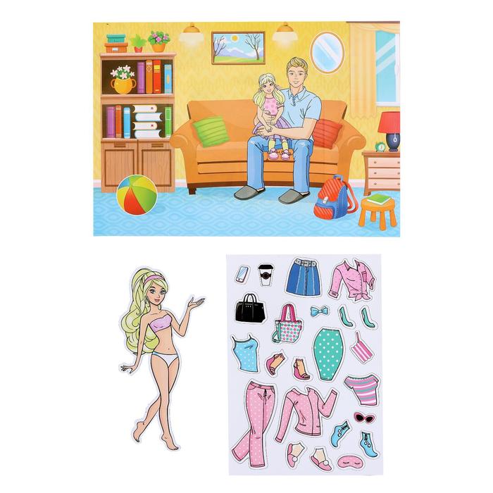 Играть с набором просто: снимите с листа подходящий наряд и аксессуары, а затем приложить их к кукле. Одежда «приклеится» к модели благодаря магнитной ленте.