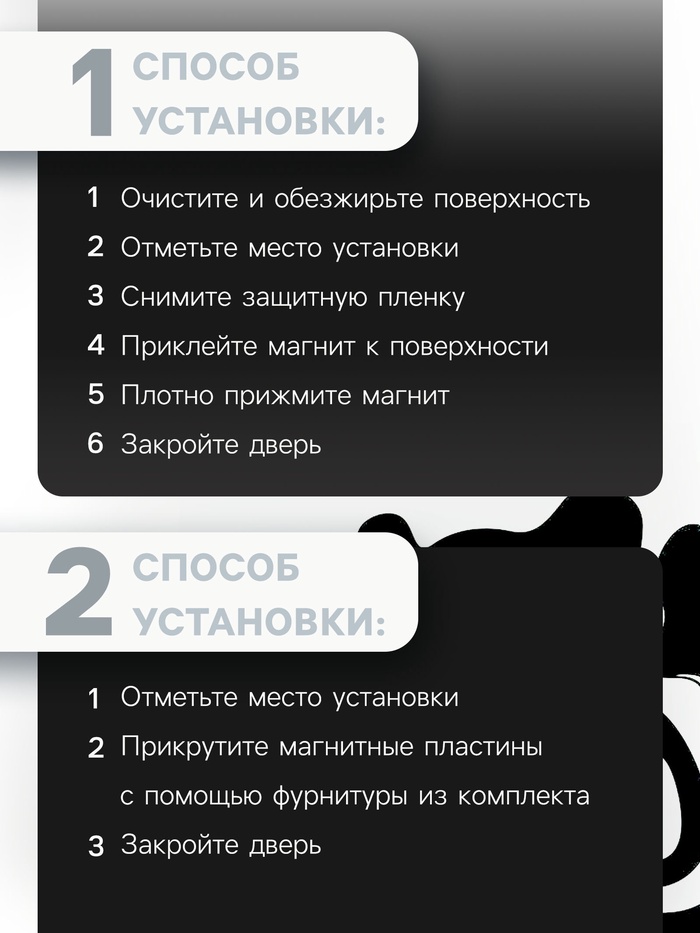 - Тип: магнитная защёлка удерживает дверь плотно и без шума, не требует ручки или ключа.