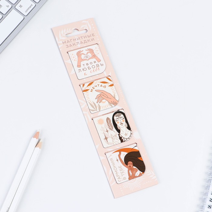 Магнитные закладки в открытке, 4 шт "Любовь к себе"