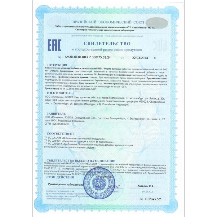 Магний - это жизненно важный элемент, находящийся во всех тканях организма. Он необходим для правильной работы клеток, а также участвует во многих реакциях обмена веществ. Магний В6 понижает возбудимость нервной системы, помогает противостоять стрессам, стабилизирует сердечную деятельность. Помимо этого, БАД положительно влияет на кровоснабжение, регулирует баланс кальция и натрия в клетках, стимулирует моторику кишечника. Недостаток витамина приводит к ишемической болезни сердца, сердечной недостаточности, атеросклерозу и артериальной гипертензии. Витамин В6 улучшает усвоение магния, но кроме того, он выполняет еще и другие функции. Он жизненно необходим для стабильной работы нервной системы, влияет на метаболизм белков и жиров. Магнезия нужен для синтеза интермедиаторов мозга и гемоглобина и в целом обеспечивает функционирование более 60 различных ферментативных систем. Магний В6 Vitamuno разработан для поддержания эмоционального здоровья. Эффективная формула магния + B6 позволяет держать стресс под контролем и не допустить серьезных “сбоев” в нервной системе. Комплекс включает органическую форму цитрата магния с высокой биодоступностью, а витамин B6 способствует более быстрому усвоению магния в организме. При перенапряжении нервной системы возникает дефицит магния, что провоцирует раздражительность, быструю утомляемость, бессонницу, учащенное сердцебиение. Еще один симптом дефицита - мышечные спазмы на фоне избытка кальция и натрия. Недостаток магния опасен для сердечно-сосудистой системы - тонус сердечной мышцы снижается, а сердцу труднее становится “качать” кровь. Прием БАДа в комплексе магния и витамина B6 способствует восстановлению эмоционального равновесия, укреплению нервной системы и снятию мышечного напряжения. Витамины магний В6 дают седативный эффект: сон становится крепким, а пробуждение легким, стрессовые ситуации перестают выбивать из колеи, проходит тревожность. Биодобавка с магнием и В6 восстанавливает работу сердечно-сосудистой системы и позволяет держать артериальное давление в норме. Mg + B6 рекомендован при интенсивных умственных и физических нагрузках.