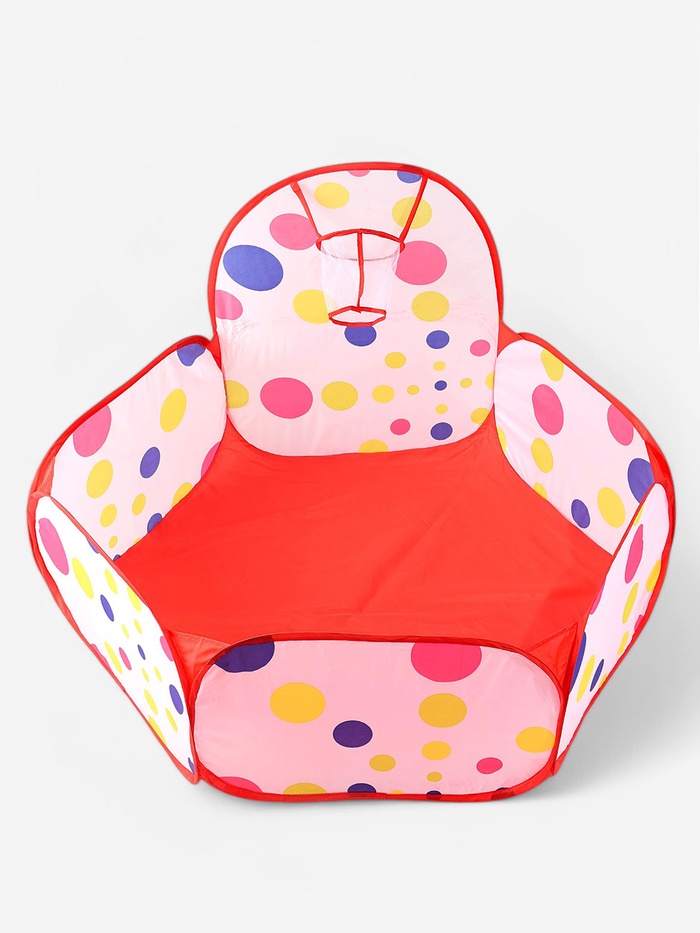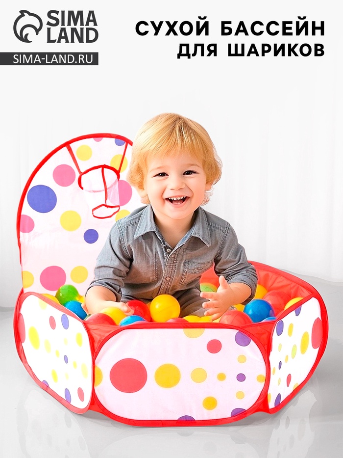Бассейн с шариками — уютное место для игр вашего малыша. Палатка оснащена баскетбольным кольцом, в которое ребёнок будет бросать пластиковые мячики.