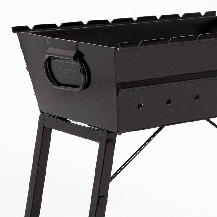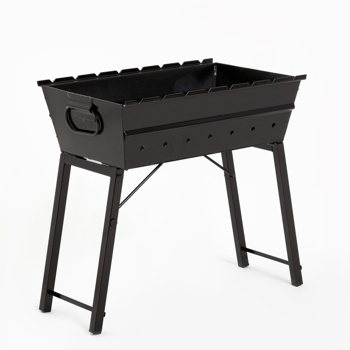 Прекрасно подходит для готовки на углях и открытом огне. Благодаря небольшим размерам и складным ножкам быстро устанавливается и разбирается. Не займет много места в багажнике при выезде на природу.