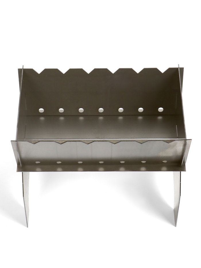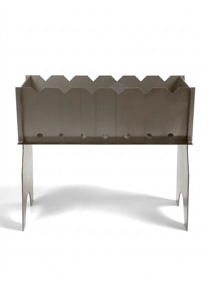 Разборная конструкция позволяет быстро собрать и разобрать мангал без лишних усилий. В сложенном виде он занимает минимум места и легко помещается в багажнике автомобиля.