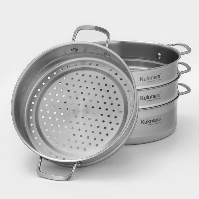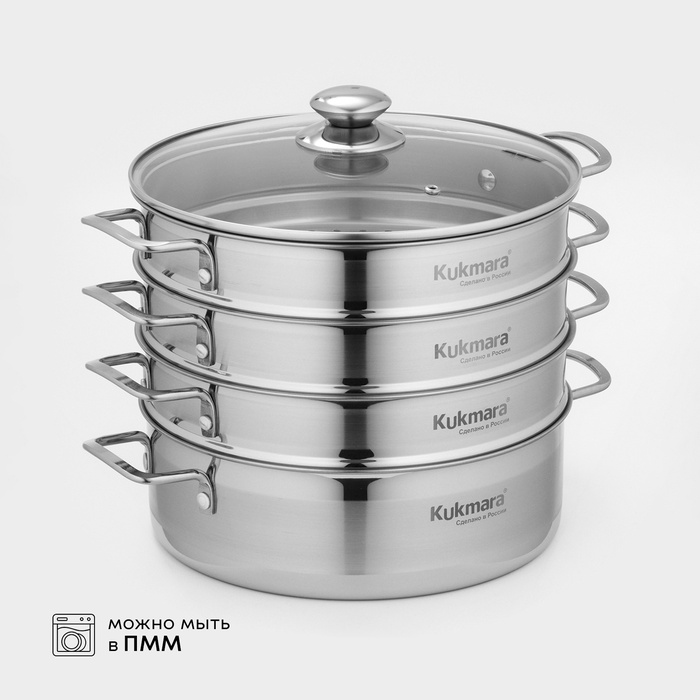 Благодаря многофункциональности мантоварки-пароварки от Kukmara, в меню вашей семьи всегда будет широкий выбор идеально приготовленных блюд. Она станет отличным помощником для любителей национальной кухни, для сторонников здорового питания, а также для практичных покупателей, ценящих в посуде универсальность, высокое качество и долговечность.