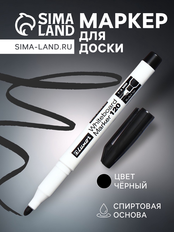 Маркер для доски Luxor 120 предназначен для надписей на досках с магнитно-маркерной и на других непористых поверхностях: стекло, фарфор, пленка.