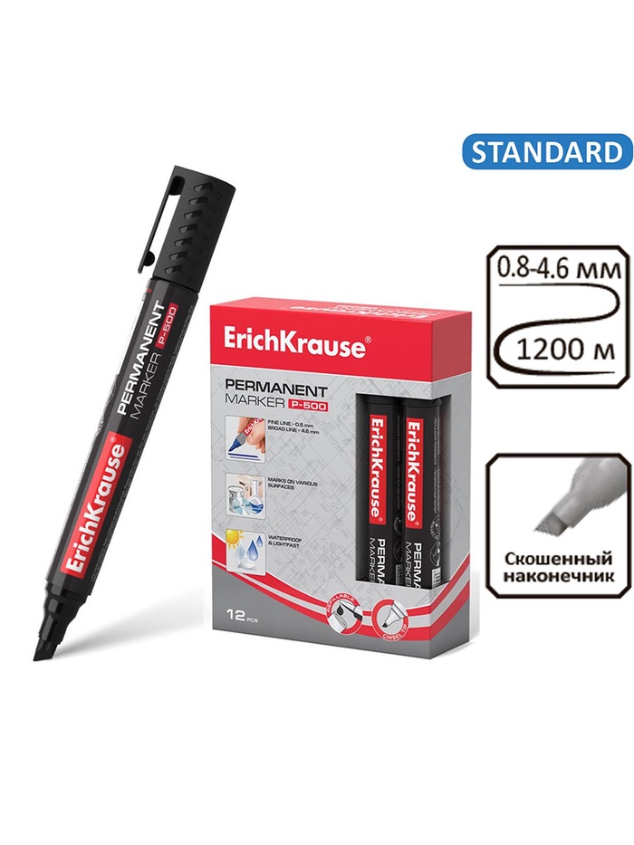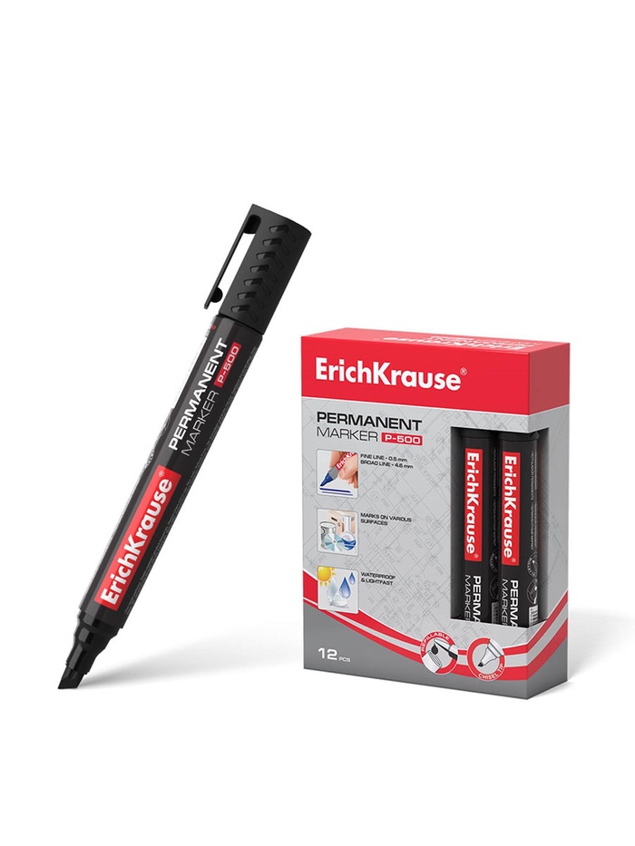 Маркер перманентный 0.5-4.6 мм Erich Krause P-500 чёрный, наконечник скошенный, чернила на спиртовой основе светостойкие, водостойкие без ксилола