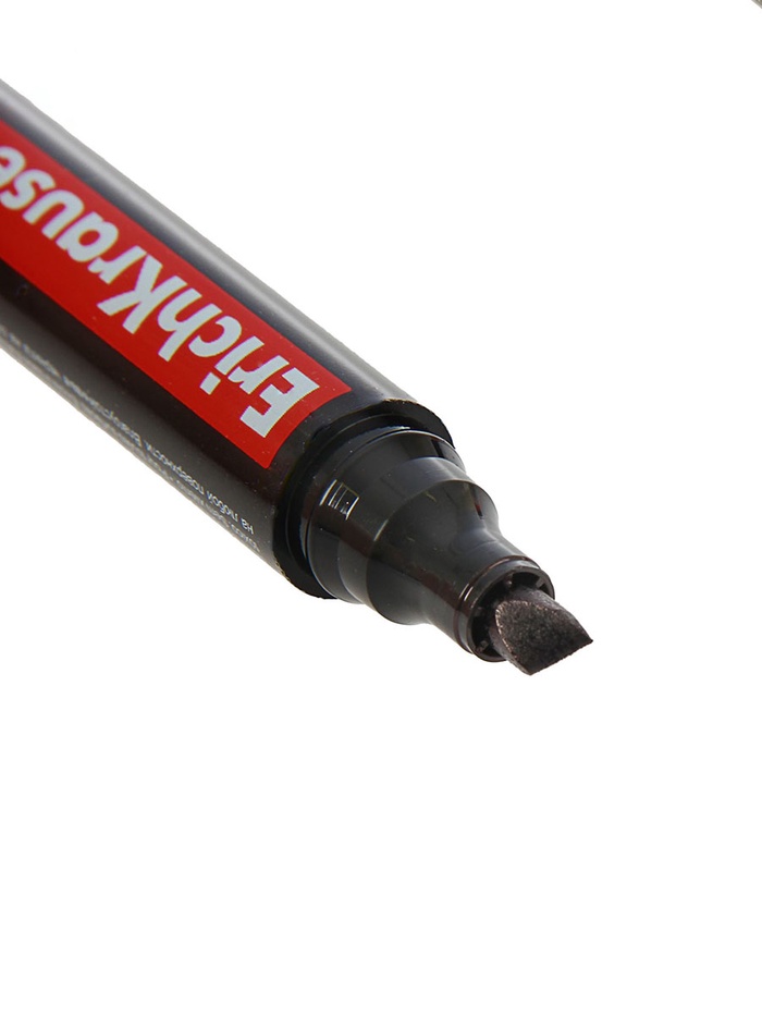 Перманентный маркер с наконечником скошенной формы. Предназначен для письма и маркировки практически на всех поверхностях: бумага, картон, стекло, пластик, фарфор, дерево и др. Имеет круглую форму корпуса и цветной колпачок с клипом. Цвет колпачка соответствует цвету чернил. Наконечник устойчив к повреждению и истиранию. Толщина линии письма – 0.5-4.6 мм. Чернила на спиртовой основе, водостойкие, светостойкие, стойкие к ультрафиолетовым лучам, быстро высыхают после нанесения. Нетоксичные. Не содержат ксилол, толуол. Срок годности 5 лет.