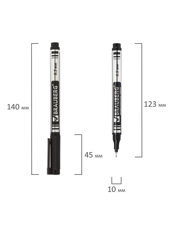 Простой и надежный маркер BRAUBERG "Jet" для повседневного использования. Предназначен для письма на любой поверхности: бумага, полиэтилен, дерево, стекло, металл, натуральная кожа, ткань, камень, плитка. Маркер перманентный черного цвета обладает круглой формой корпуса из пластика, диаметр которого 10 мм. Толщина линии письма - 0,5 мм. Особая нестираемая основа перманентного маркера обеспечивает такие качества, как стойкость к воздействию воды, ультрафиолету, низких и высоких температур. Благодаря спиртовой основе чернила быстро сохнут и не размазываются. Износостойкий фетровый наконечник устойчив к повреждениям и обеспечивает экономный расход чернил. Изделие не перезаправляется. Плотно закрывается колпачком, что предотвращает высыхание наконечника и чернил. Цвет колпачка соответствует цвету чернил.