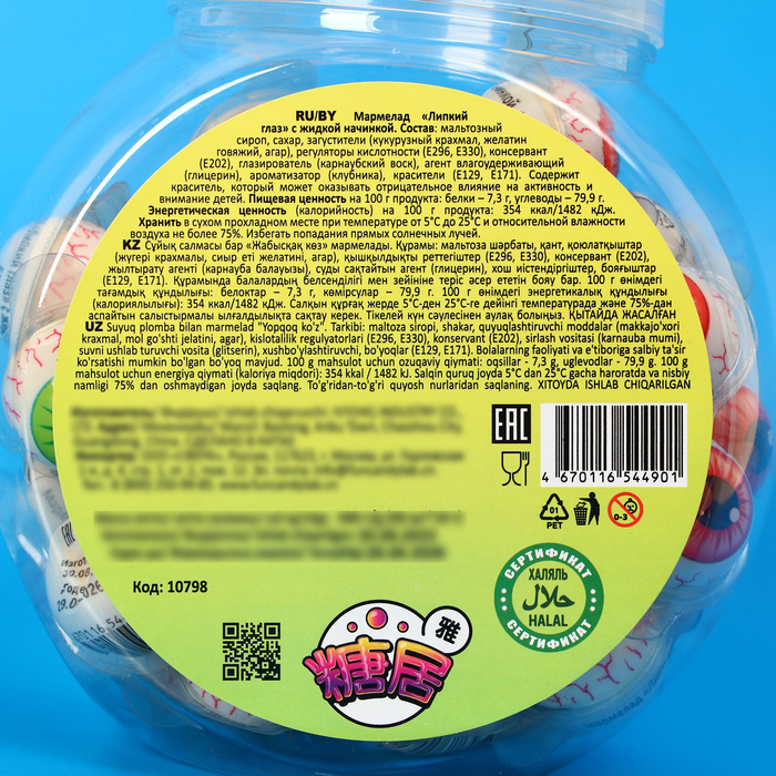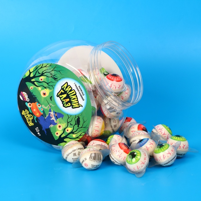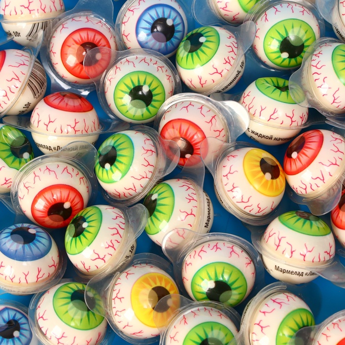 Необычные мармеладные конфеты - веселое и сладкое угощение для взрослых и детей. Мармелад в виде глаз заряжает позитивом и бодростью на целый день! Мягкая и сочная консистенция, а также нежный, сладкий вкус покорят Вас, в то время как узнаваемые ягодные и фруктовые нотки напомнят о детских беззаботных порах.