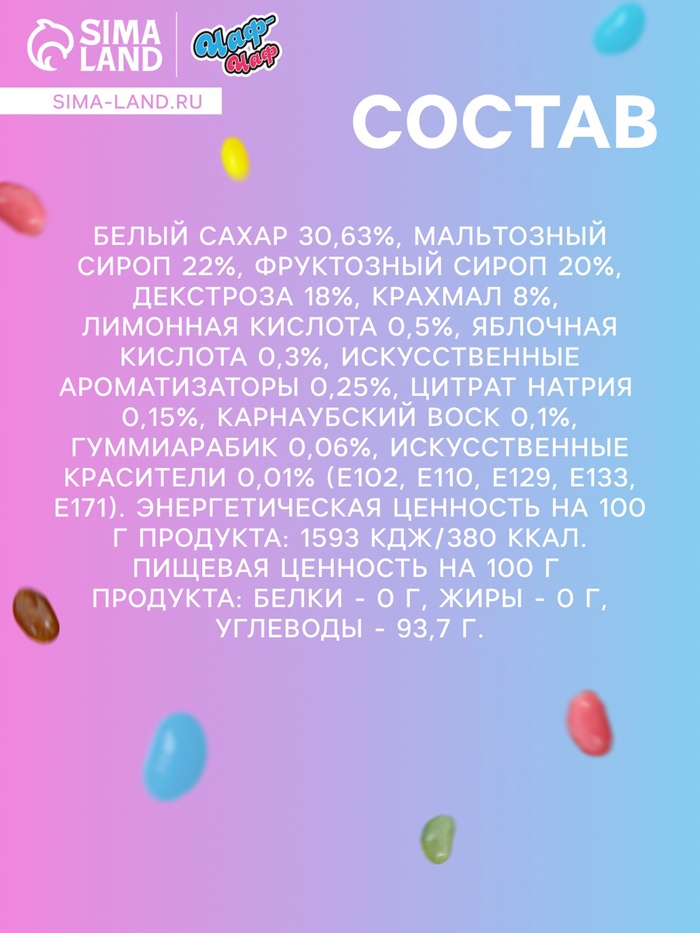 Мармелад "Бобы желе" — отличный выбор для всех любителей сладостей, которые хотят порадовать себя новыми, оригинальными вкусами. Каждая упаковка — это настоящая находка для угощения, подарка или просто удовольствия в любое время суток. Подарите себе радость и вкусное наслаждение с любимыми бобами!