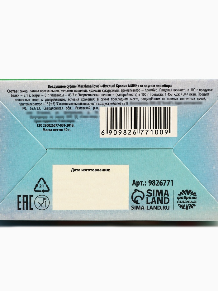 Состав: сахар, патока крахмальная, желатин пищевой, крахмал кукурузный, ароматизатор – пломбир.