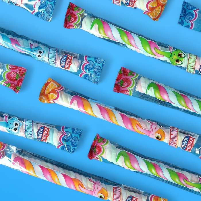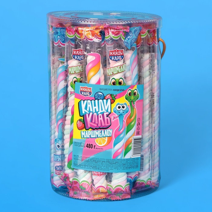 Маршмеллоу "Канди Клаб" изготовлено в форме длинной косички и имеет индивидуальную упаковку, поэтому его удобно брать с собой в качестве перекуса или угощения.