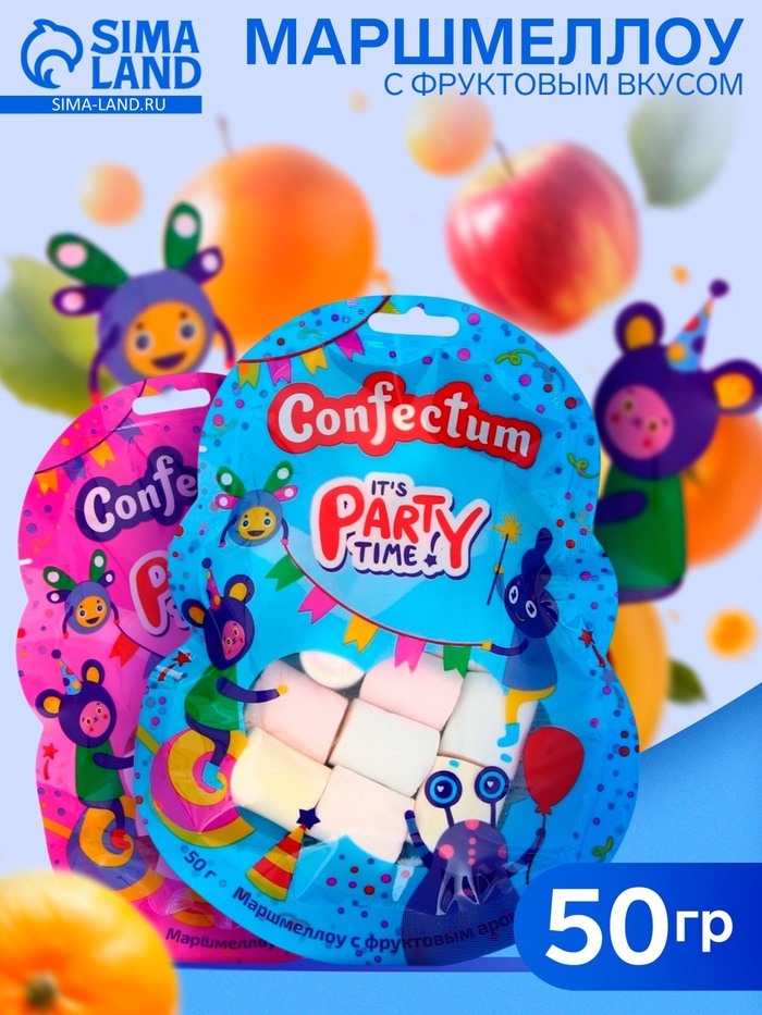 Маршмеллоу Вечеринка "Confectum clouds" с фруктовым вкусом — это яркое и радужное угощение, которое порадует как детей, так и взрослых! Упакованные в удобную упаковку 50 г, эти маршмеллоу станут отличным перекусом, идеальным для сладкого угощения в любой ситуации.