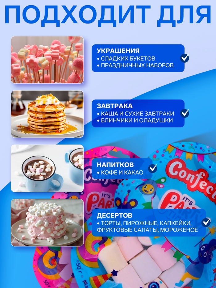 Каждый кусочек мягкого и воздушного маршмеллоу обладает насыщенным вкусом. Яркие цвета делают этот десерт не только вкусным, но и визуально привлекательным, добавляя веселое настроение в ваш день.