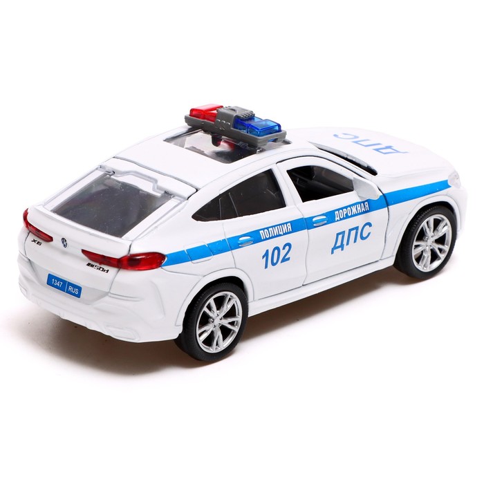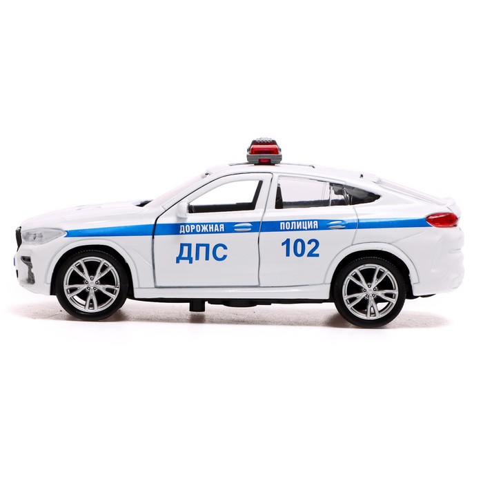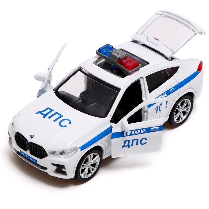 - Лицензионная модель: точное воспроизведение BMW X6 с полицейской символикой. Классический белый цвет с синей полосой.