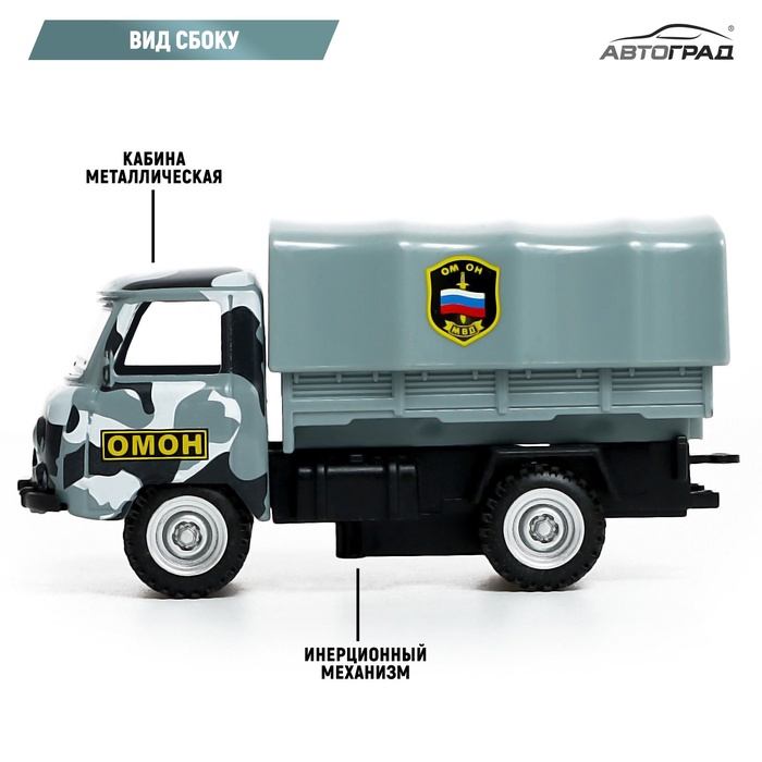 Машина инерционная «УАЗ 452. ОМОН» — детально проработанный транспорт. Машинка дополнит игрушечный автопарк и станет прекрасным подарком для маленького любителя техники.