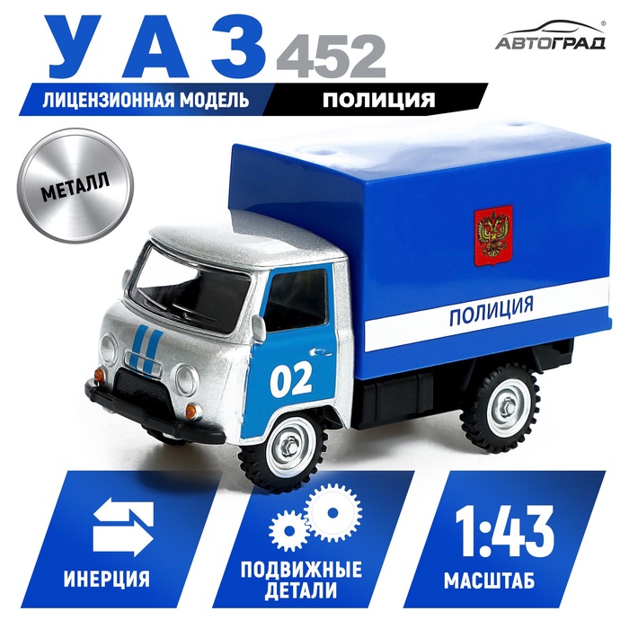 Машина инерционная «УАЗ 452. Полиция» — детально проработанный транспорт. Машинка дополнит игрушечный автопарк и станет прекрасным подарком для маленького любителя техники.