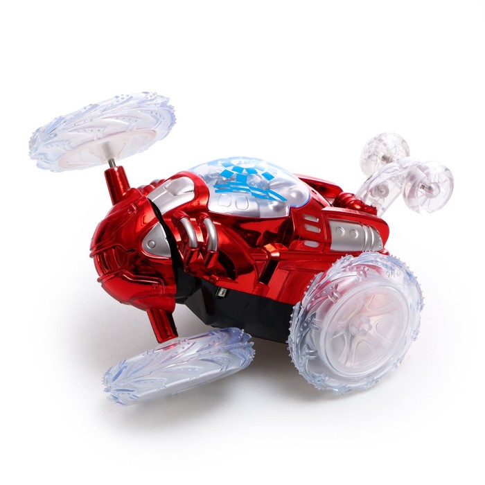 Радиоуправляемая машина-перевёртыш «Трюк» способна подстраиваться под любые дорожные условия! Ведь она может ездить на двух колёсах, а ещё у неё вращается передняя пара колёс как по часовой стрелке, так и против.