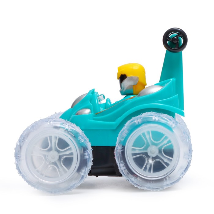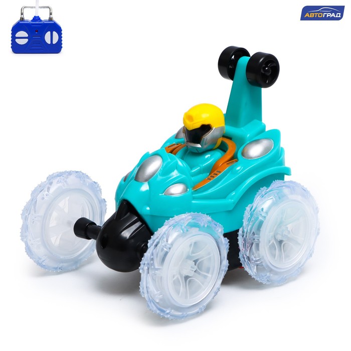 Радиоуправляемая машина-перевёртыш «Трюк» способна подстраиваться под любые дорожные условия! Ведь она может ездить на двух колёсах, а ещё у неё вращается передняя пара колёс как по часовой стрелке, так и против.