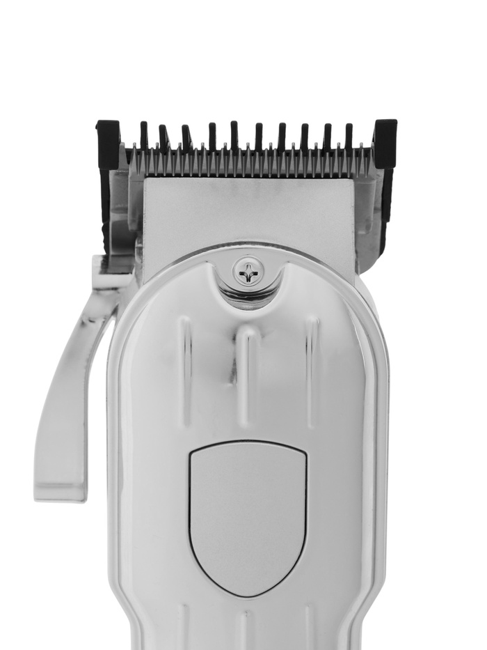Серебристая машинка для стрижки — лаконичный и практичный инструмент для домашнего ухода за волосами. Универсальный дизайн впишется в ванную любого дома. Четыре насадки-гребня позволяют выбирать длину стрижки от 1.5 до 6 мм, что даёт гибкость: можно сделать короткую стрижку, выровнять длину или освежить причёску перед выходом.