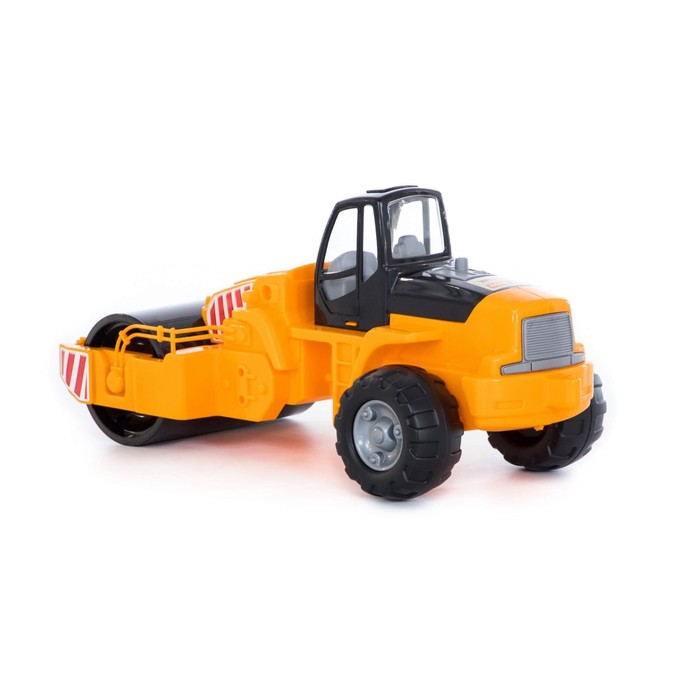 Каток ТМ «Полесье» порадует всех любителей спецтехники. Транспорт оснащён подвижным вальцом для проведения дорожно-ремонтных работ. Благодаря большим пластиковым задним колёсам игрушка подойдёт для развлечений дома и на улице.