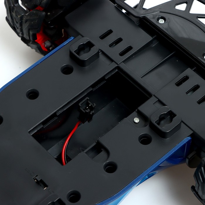 - Полный привод — никаких преград: лёгкие подъёмы, песок, ковры — внедорожник не застрянет даже в «грязи» из одеял. Колёса с рельефным протектором цепляются за любую поверхность.
