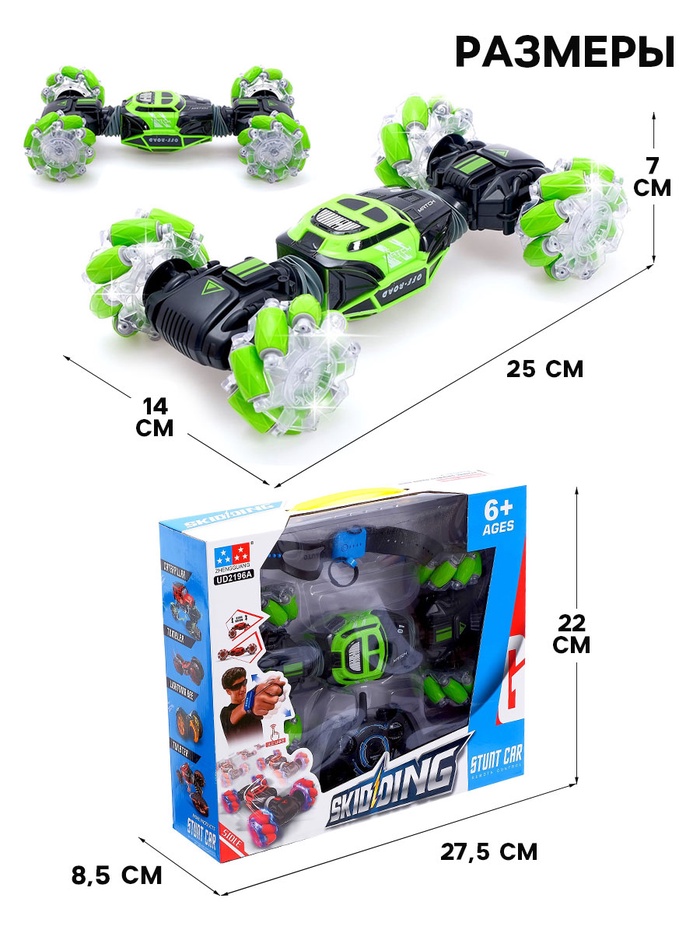 Машинка-перевертыш Hyper Skidding — это интерактивная игрушка для детей от 6 лет, которая порадует уникальными функциями управления жестами и яркими световыми эффектами. Машинка выполнена в масштабе 1:16 и оснащена аккумулятором, обеспечивающим 20 минут непрерывной игры.