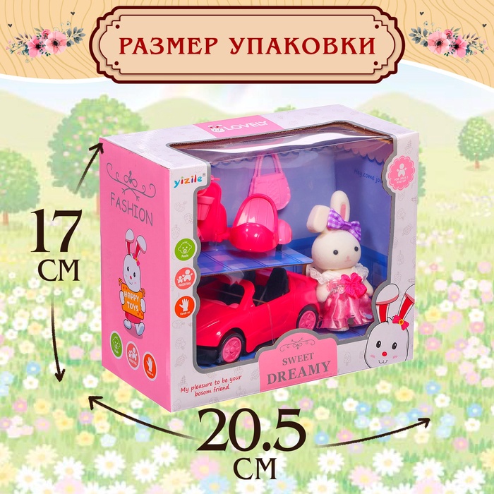 Игровой набор «Зверята. Автолюбитель» — мир приключений для вашего ребёнка! В набор входит стильная машинка, модный мотоцикл с коляской, очаровательная зайка и милая сумочка.