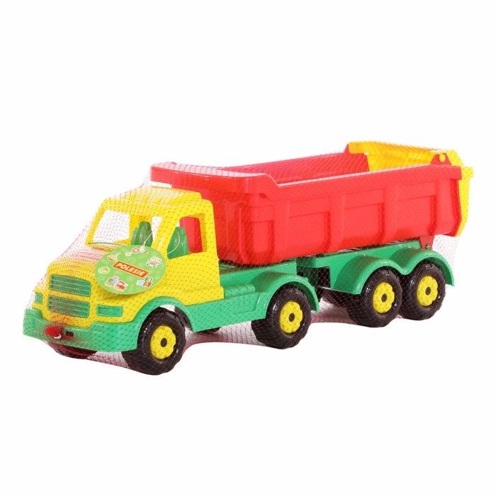 Самосвал — самая популярная игрушка среди мальчиков. Конструкция игрушки выполнена из высококачественного прочного пластика, а также лишена острых углов. Она оснащена вместительным откидным кузовом, в который можно засыпать песок или камушки.