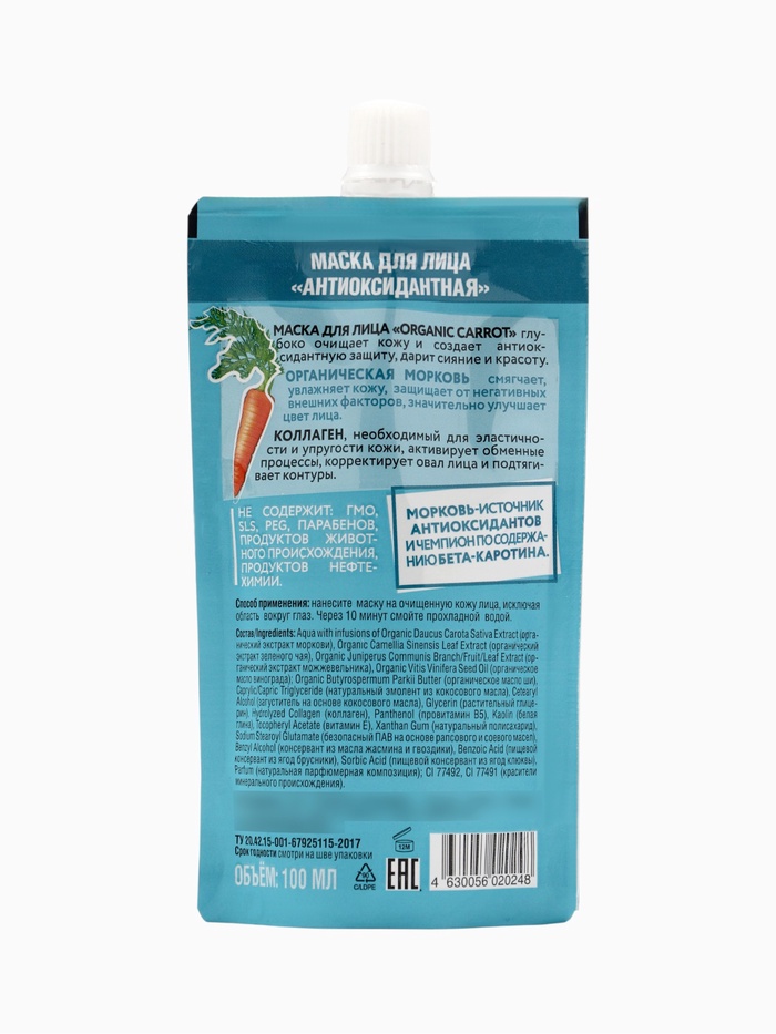 Антиоксидантная маска для лица с экстрактом моркови из серии Planeta Organica Eco Carrot создана для интенсивного ухода за кожей, нуждающейся в питании, защите от свободных радикалов и улучшении естественного сияния. Богатый состав маски помогает восстановить тонус, улучшить текстуру кожи и поддержать её здоровье.