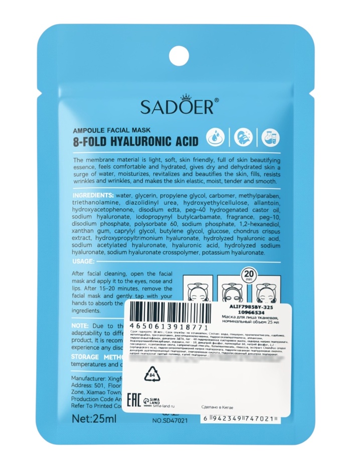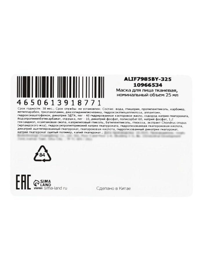 Вода, глицерин, пропиленгликоль, карбомер, метилпарабен, триэтаноламин, диазолидинилмочевина, гидроксиэтилцеллюлоза, аллантоин, гидроксиацетофенон, динатрия ЭДТА, пег - 40 гидрированное касторовое масло, содород натрия гиалуроната, йодопропинилбутикарбамат, отдушка, пег - 10, динатрий фосфат, полисорбат 60, натрий фосфат, 1,2 - гександиол, ксантановая смола, каприлиловый гликоль, бутиленгликоль, глюкоза, экстракт Chondrus crispus (ирландского мха), гидроксипропилтримоний натрия гиалуроната, гидролизованная гиалуроновая кислота, динатрий ацетилированный гиалуронат, гиалуроновая кислота, гидролизованный динатрия гиалуронат, натрий гиалуронат сшитый полимер, калий гиалуронат.