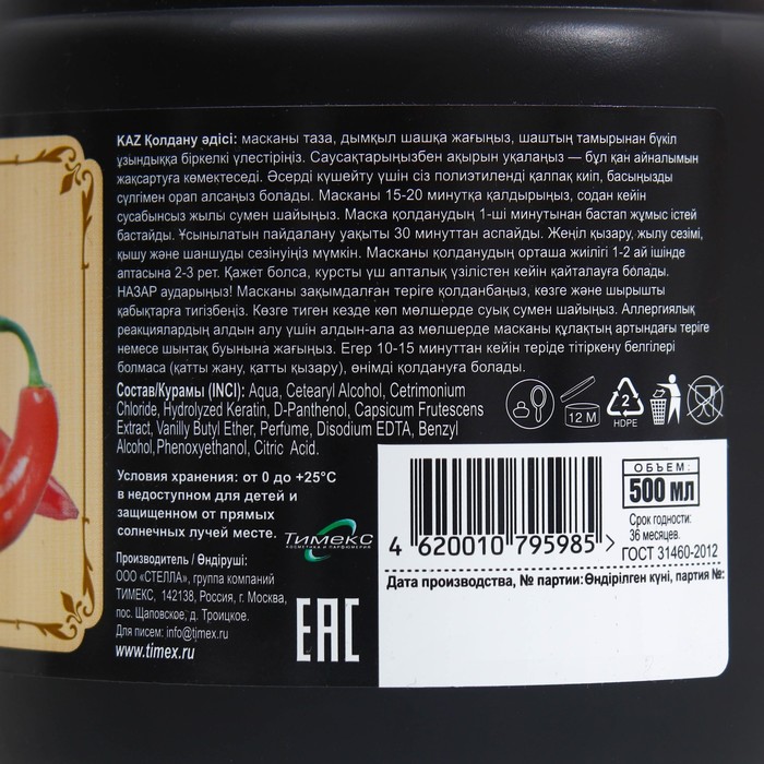 Состав: aqua, cetearyl alcohol, cetrimonium chloride, hydrolyzed keratin, D-Panthenol, capsicum frutescens extract (экстракт перца), vanillyl butyl ether, perfume, disodium edta, benzyl alcohol, phenoxyethanol, citric acid.