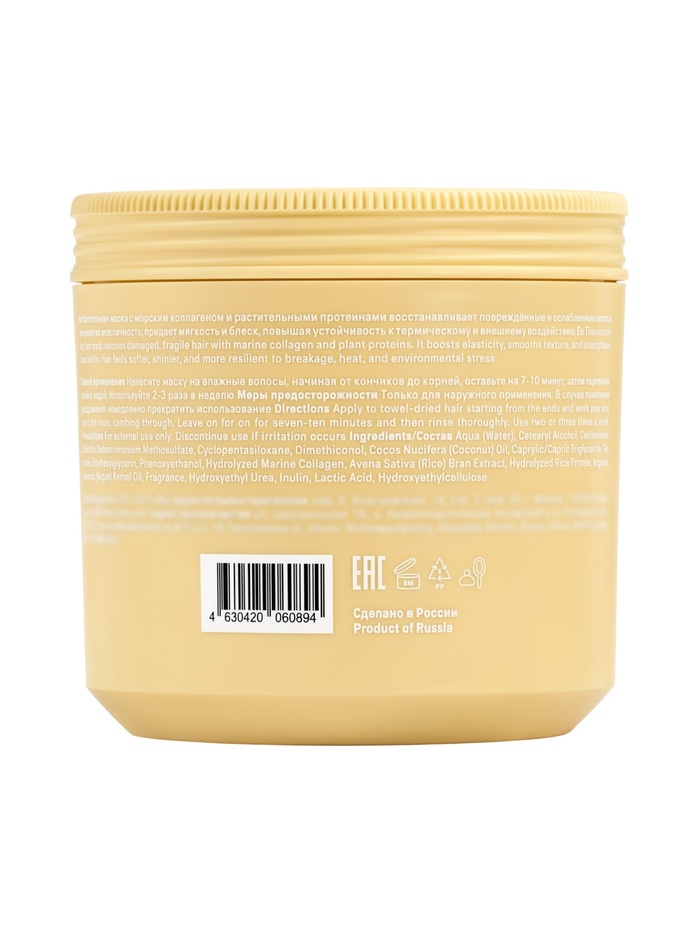Объём 400 мл обеспечивает экономичный расход и делает маску удобной для длительного использования как дома, так и в салонных условиях.