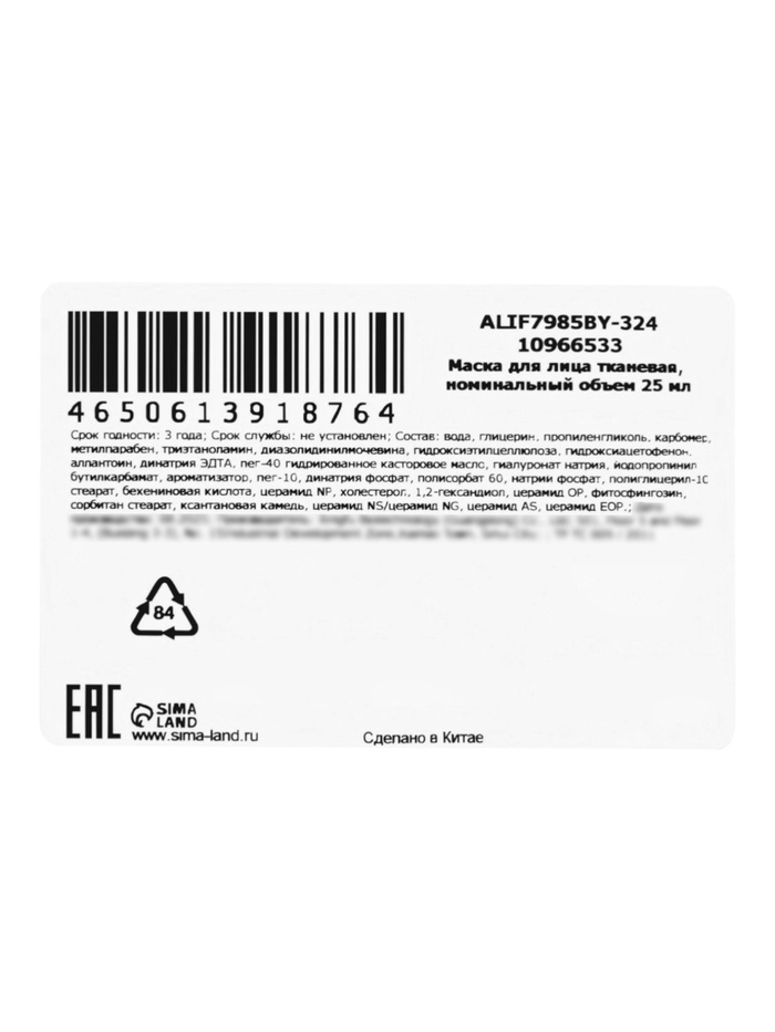 Вода, глицерин, пропиленгликоль, карбомер, метилпарабен, триэтаноламин, диазолидинилмочевина, гидроксиэтилцеллюлоза, гидроксиацетофенон, аллантоин, динатрия ЭДТА, пег-40 гидрированное касторовое масло, гиалуронат натрия, йодопропинил бутилкарбамат, ароматизатор, пег-10, динатрия фосфат, полисорбат 60, натрий фосфат, полиглицерил-10 стеарат, бехениновая кислота, церамид NP, холестерол, 1,2-гександиол, церамид OP, фитосфингозин, сорбитан стеарат, ксантановая камедь, церамид NS/церамид NG, церамид AS, церамид EOP.